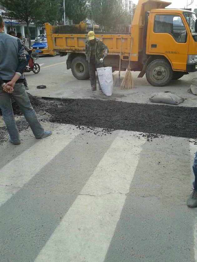 内蒙古乌兰察布集宁区施工现场案例(冷拌液修补的坑槽)