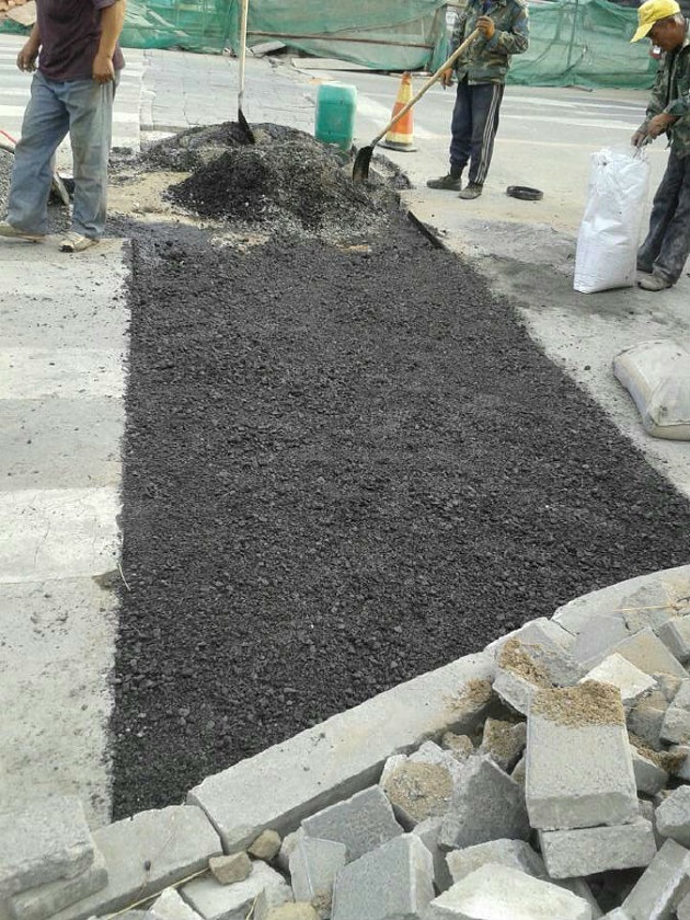 案例简介︰1,用冷补液搅拌碎石2,用汤勺加入干粉添加剂3,进一步搅拌