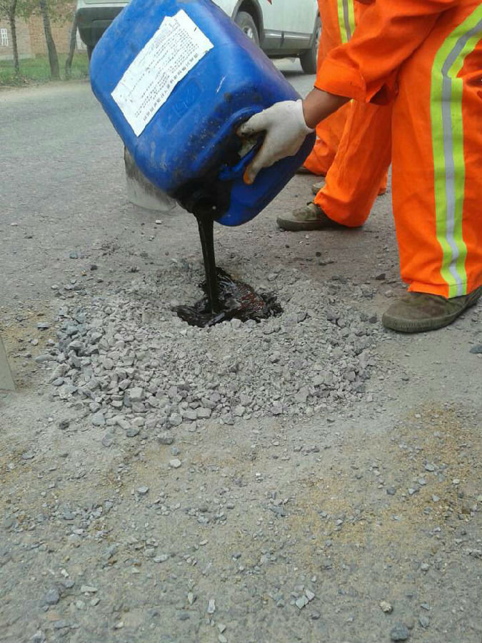 4,倒入冷补液搅拌碎石